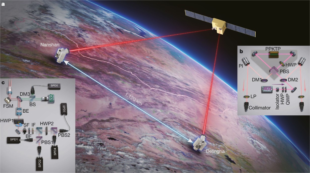 Lo studio, pubblicato oggi sulla rivista Nature, illustra come i ricercatori cinesi abbiamo usato coppie di fotoni correlati per scrivere la chiave segreta della cifratura. Questa chiave sarebbe quindi stata emessa da un satellite in orbita a 500 chiloetri di altezza e trasmessa a due telescopi posti a 1.120 chilometri di distanza l’uno dall’altro. Detto diversamente i bit contenenti la chiave per decifrare i messaggi sarebbero stati scritti usando due particelle di luce fra loro correlate. Il messaggio vero e proprio può essere trasmesso in qualsiasi altro modo (anche via cavo) ma la chiave (in questo caso a 372 bits) per poterlo leggere ha viaggiato via satellite usando e sfruttando l’entanglement quantico. Ciò rende la comunicazione sicura e molto difficile da intercettare da potenziali hackers.