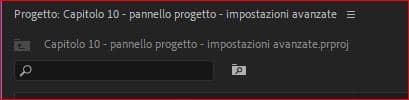 Cercare un elemento tramite la barra di ricerca del pannello progetto di Adobe Premiere